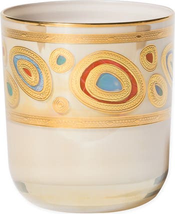 Inspired by royal emblems and decorations, this double old-fashioned glass adds a breath of color to your table and is hand-painted in 14-karat gold.