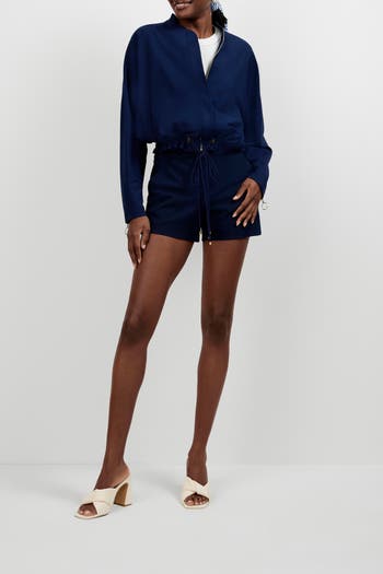 Ponte bomber jacket with a full zipper front and drawstring waist