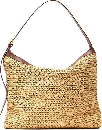 Natural woven raffia and leather trim bring textural contrast to this spacious shoulder bag large enough for all your daily essentials.