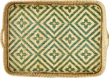 Put a smart Spanish accent on everything you serve with this intricately woven wicker tray that carries by the sturdy handles for conveying everything from drinks to a luxurious breakfast in bed.