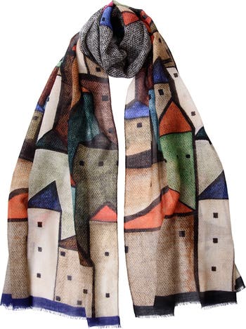 I'm excited to introduce you to our lightweight wool scarf, featuring a whimsical print of a charming Italian hillside village. It’s like wrapping yourself in a little piece of Italy, with its playful details and soft, cozy feel. The wool is incredibly soft and cozy, making it perfect for those cooler days when you want something warm without the bulkiness of a thick scarf. It’s a scarf that’s sure to bring a smile to your face every time you wear it!
