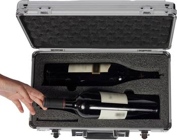 - STYLISH AND DURABLE - It features an aluminum alloy frame with steel corners and high Impact ABS plastic side panels to keep this case impact resistant. FEATURES – Removable custom foam inserts with velvet flocking that allow for the snug fit of two wine or other bottles that are enclosed in foam on bottom and top of case and prevent movement of bottles in transit. Foam inserts include indented space for wine opener (wine opener not included). Comes with lock and key for securing case while in storage or transit. IDEAL FOR TRAVELING - This case is easy to carry, weighing less than 4.00lbs / 1.75kg without bottles, 10.50lbs / 4.75kg with bottles (assuming 3.20lbs/1.45kg per bottle). It is the perfect case to take with you via car, boat, or whenever carrying wine or spirits to that special place or occasion. PERFECT GIFT – When filled with wine or spirits, makes a stylish presentation and a great gift for those who appreciate the finer things in life