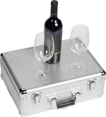 - STYLISH AND DURABLE - It features an aluminum alloy frame with steel corners and high Impact ABS plastic side panels to keep this case impact resistant. FEATURES – Removable custom foam insert allows for the snug fit of one bottle and two wine glasses that are enclosed in foam on bottom and top of case and prevents movement in transit. Foam insert includes indented space for wine opener (wine opener not included). IDEAL FOR TRAVELING - This case is easy to carry, weighing less than 4.5lbs/2.05kg without bottles, 8lbs/3.4kg with bottle and glasses (assuming 3.0lbs/1.36kg per bottle). It is the perfect case to take with you via car, boat, or whenever carrying wine or spirits and glasses to that special place or occasion. PERFECT GIFT – When filled with wine or spirits and your favorite glasses, makes a stylish presentation and a great gift for those who appreciate the finer things in life
