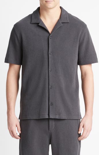 A stretch-cotton bouclé fabric adds fine texture to this camp shirt cut for a relaxed fit so it feels as good as it looks.