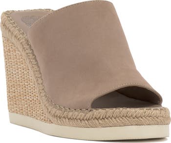 A thick strap accents the dramatic plunge of this casual-chic mule boosted by a chunky wedge heel with a whimsical jute finish.