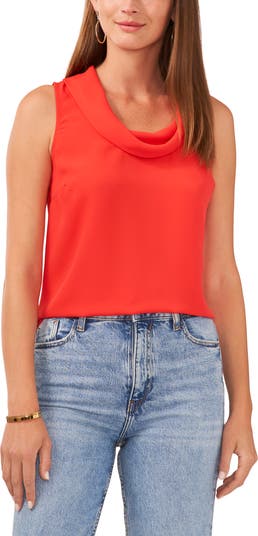 A drapey cowl neck tops this smooth sleeveless blouse styled with an easy-moving back pleat.