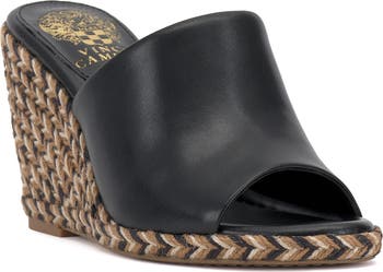A comfortable wedge heel lends height to a mule-style sandal crafted with a supple, buttery-soft leather upper.