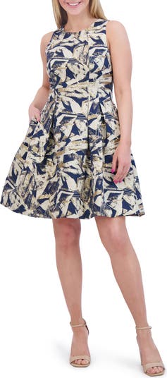 Splashes of sparkle provide party-readiness for this fit-and-flare dress that will turn heads.