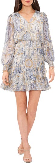 Paisley Long Sleeve Chiffon Minidress