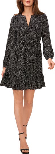 A delightful print enlivens this light and lovely dress designed with a flouncy ruffled skirt.