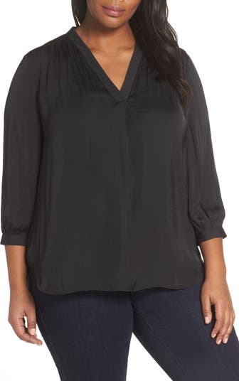 Hammered satin adds richness to this versatile top with a casual V-neck and easy pull-on style.