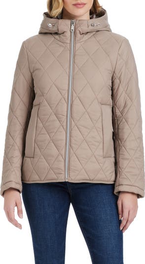 Diamond quilting adds polish to a wear-everywhere jacket topped with a toggle-tightened hood.