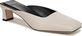 A sharp square toe amplifies the contemporary appeal of a streamlined leather mule set on a cushioned footbed and demi block heel.