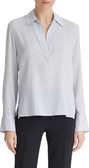 Vince Micro Stripe Stretch Silk Popover Shirt