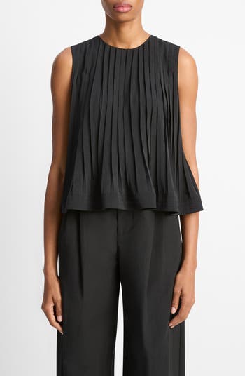 Sharp pleats create texture and movement on this light and airy tank cut in a roomy A-line silhouette.