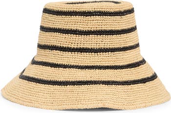 Top off your sunny day look in classic style with this striped straw cloche featuring a face-shielding wide brim.