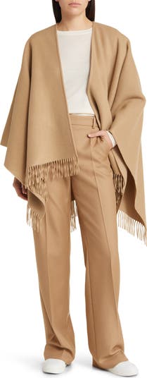 Feel the warmth of this drapey open-front ruana crafted from a luxe double-faced wool-and-cashmere blend finished with swingy fringe.