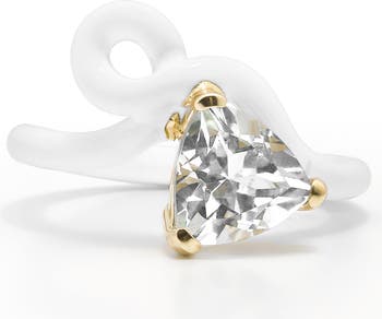 A faceted trillion-cut stone meets the fluid curve of an enamel vine band to shape a bold, modern ring with sculptural charm.