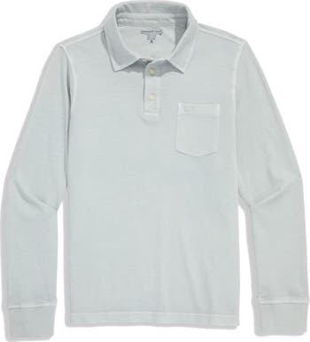 A soft garment wash defines a long-sleeve cotton polo that your child can wear most anywhere.