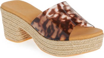 A sleek vinyl strap adds a chic touch to this vacay-ready slide sandal that boosts your look with a jute-wrapped platform and chunky block heel.