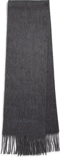 A supersoft blend of alpaca and wool gets a cozy brushed finish in this fringe scarf tonally embroidered with logo lettering.