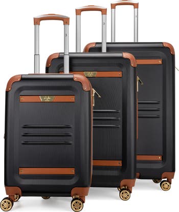 - Each suitcase shell is made from a blend of Polycarbonate and ABS, accented with vegan leather stripes