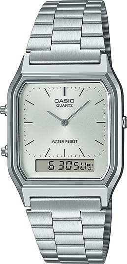 The elegance of analog and versatile functionality and easy readability of digital displays coexist on this classically styled watch with contemporary multifunctionality. A two-hand analog watch brings a clean look and quick, easy readability to the timepiece, with a digital-readout window beneath the dial that displays all other functions, such as date, stopwatch and second time-zone data.