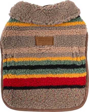 Keep your furry friend toasty with this reversible dog jacket that features an iconic Pendleton print on one side and quilted faux suede on the other.