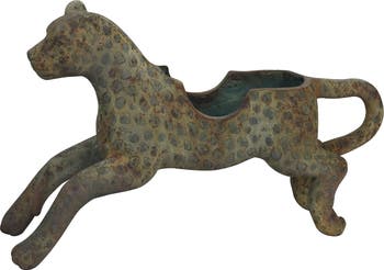 Vintage Carousel Leopard Planter, Distressed Multicolor