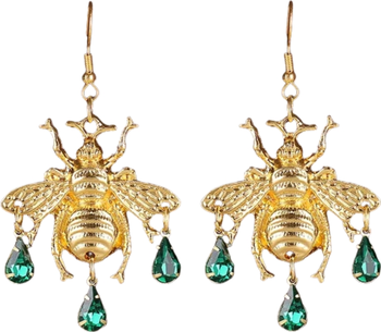 Inspired by the cicada, these Vintage Cicada Gem Earrings symbolize renewal and resilience. With a gold-toned finish and cascading gem drops, they offer a luminous and refined look, perfect for any occasion.