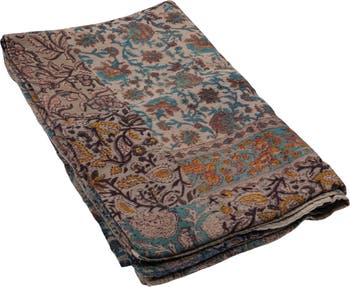 - A unique vintage cotton throw featuring intricate embroidery and vibrant prints