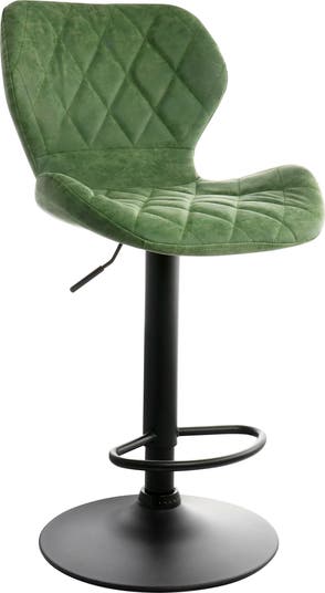 Add a stylish touch to your home bar or kitchen counters with the Elama Vintage Faux Leather Bar Stool in Green with Black Base. No handles ensure these stools fit easily side by side without the bulkiness. Designed with a distressed faux leather cushion with matte black base for a vintage look. Features a swivel base and foot rest for convenient mobility and added support. Assembly is made easy with the included tools. Crafted from quality faux leather and sturdy metal for a strong and long-lasting design.