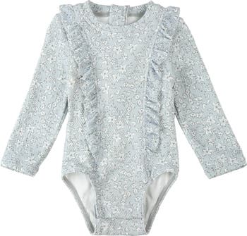 A quick-drying waffle knit will keep your little one comfortable in a long-sleeve swimsuit made with built-in UPF protection for sunny days spent poolside.