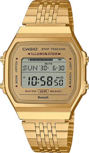 The standard-bearer for digital watchmaking, Casio continues to impress with full-feature watches at accessible prices, as this Vintage style proves with its retro-look, state-of-the-art functional design featuring bluetooth connectivity with your smartphone and the Casio Watches app, enabling your to track your activity and two different time zones in addition to all the other functionality that the watchmaker is known for.