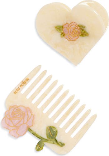 This hand-painted, limited-edition set pairs a romantic heart claw clip and wide-tooth comb in a vintage-inspired set you'll love to give as a gift or to treat yourself.