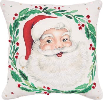 Featuring a jolly picture of Santa’s face, this beautifully printed and embellished Vintage Santa Pillow has a festive wreath of holly berries and leaves that frames this classic Christmas icon. Adorned with whimsical little stars that add a touch of sparkle to the design, the soft white background enhances the vibrant colors of this design, helping to bring the magic of Christmas to life. Perfect for decorating a living room, bedroom, or cozy reading nook, this enchanting pillow spreads joy and warmth throughout the holiday season by infusing holiday decor with classic cheer.