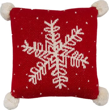 - Features a handwoven vintage snowflake pattern adorned with soft pompom corners, creating a classic winter look. Its detailed weaving and textured finish bring warmth and style to seasonal interiors.