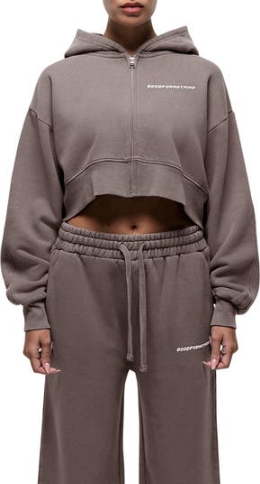 Vintage Taupe Crop Zip Hoodie