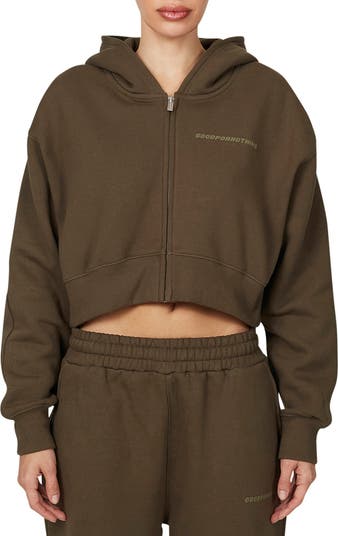 - Closure- Zipper, Vintage Brown Tonal Crop Zip Hoodie