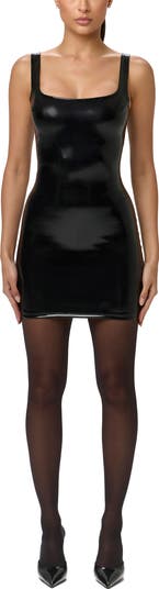 Made a bold statement on your next night out in this curve-skimming vinyl mini made with comfortable stretch and a soft inner lining ensuring comfort against the skin while maintaining its chic exterior.