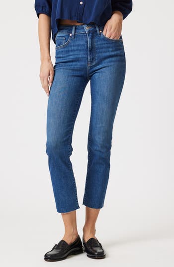 Made with raw hems and slim-cut straight legs, these superstretchy jeans offer legging-like comfort and the look of authentic denim.