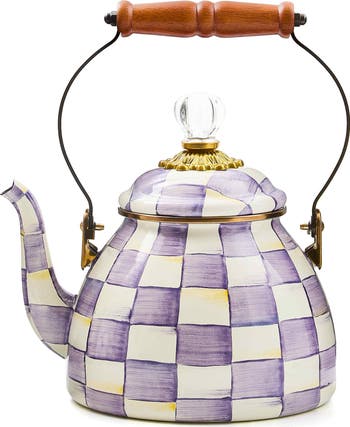 Violet Check Enameled Steel 2-Quart Tea Kettle