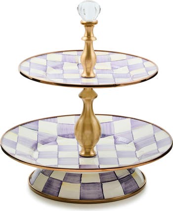 Violet Check Enameled Steel 2-Tier Sweet Stand