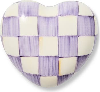 Add some charm to your living space with this heart-shaped knob made from hand-glazed ceramic and highlighted by the brand's signature hand-painted Violet Check pattern.