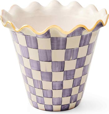 MACKENZIE CHILDS Violet Check Jumbo Ceramic Garden Pot, Main, color, Violet
