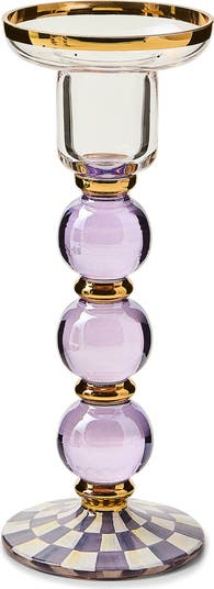 Elevate your illumination situation with the statuesque silhouette of this glass candleholder that's hand-painted with color-dragged checks highlighted with gilt details that amplify your candle's flame.