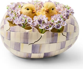 Welcome the season with fluffy friends peeking out from an egg decorated with the brand's signature color-dragged checks and plenty of pretty blossoms.