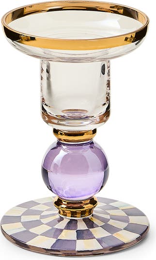 Violet Check Small Glass Candleholder