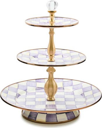 Hand-painted checks and a coordinating knob top are anything but basic on this enameled-steel stand that provides three tiers to display your sweetest treats.