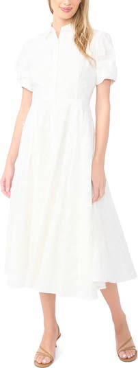 Tonal floral embroidery provides an enchanting finishing touch for this woven cotton shirtdress in a classic A-line silhouette.